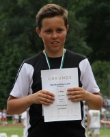 Im 2. Lauf gingen Fridtjof Schade (M 12) und Robin Mickan (M 11) auf die gleiche 10 Runden lange Strecke. Fridtjof gelang es ebenfalls in der AK 12 mit gelaufenen 6:52,71min. den 13 Jahre alten Landesrekord um 0,6 Sekunden zu drücken.