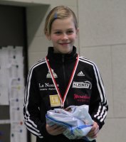 In der AK 14 ging Jasmin Kotte über die 2000m an den Start. Mit einem couragierten Lauf, in dem Jasmin nie den Überblick verlor, setzte sie sich ca. 2 ½ Runden vor Schluss an die Spitze des Feldes. Ihre Chance nutzend, gab sie die Führung auch nicht mehr aus der Hand und wurde völlig überraschend Landesmeisterin auf dieser Strecke. In 7:37,62 min. steigerte sie ihre alte Bestzeit um 5 Sekunden.