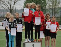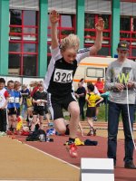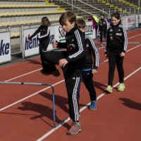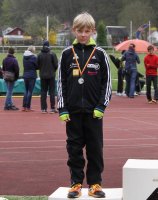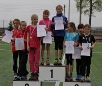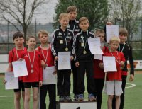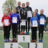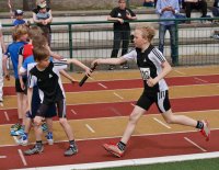 Doch das sollte den Bautzenern heute noch lange nicht reichen – alle waren motiviert, als es auf die 3×800 m ging, und keiner wollte leer ausgehen. Gleich zu Beginn legten sich die Jungen der U10 mächtig ins Zeug. Elias Kummer, Elias Grahle und Marvin Jähne zeigten sehr ausgeglichene Leistungen und liefen mit großem Vorsprung zum Sieg. Danach waren die Jungen der U12 an der Reihe, die aus Verletzungsgründen nicht in Bestbesetzung antreten konnten. So war es etwas überraschend, aber umso erfreulicher, dass Florian Ullrich, Janoš Nuck und Luis Lange ähnlich souverän das zweite Staffelgold des Tages nach Bautzen holten. Für die Mädchen der U10 ging es teilweise noch darum, Erfahrung zu sammeln, doch auch Johanna Bruck, Nathalie König und Selma Stehr kämpften bis zum Schluss und belohnten sich mit dem bronzenen Rang. Die Mädchen der U12 lieferten sich anschließend lange einen packenden Zweikampf mit dem DSC um den Sieg, in dem sie zwar unterlagen, jedoch dürfen Gloria Pietsch, Annabell Engst und Luisa Pietsch aufgrund der starken Endzeit auf ihre Silbermedaille besonders stolz sein. Schließlich war die Jugend der U14 an der Reihe. Auch hier versilberten sich Julian Gehrmann, Lennard Muschinski und Karim Hamdi ihren Staffellauf und konnten danach mitjubeln, wie Larissa Mirtschink, Alicia Rode und Elena Grahle zum Abschluss ein Lauffeuerwerk auf dem rot-gelben Radebeuler Tartan abbrannten und dem OSLV das dritte Gold bescherten.