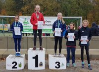 Pünktlich zu den Starts der Jugendläufe setzte nun Regen ein, was aber der Spannung beim Kampf um die Meisterschaftslorbeeren keinen Abbruch nahm. Oftmals wurde erst im Zielsprint die Rangfolge entschieden, was ausgeglichenes Leistungsniveau zeigt. Freuen durfte sich auch der OSLV mit seinen Nachwuchsläufern. Mit viel Kampfgeist lief Maris Rentsch (W12) unerwartet zu ihrem 1. Landesmeisterschaftstitel und feierte mit den Vereinskameradinnen Selma Stehr (5. Pl. in der W13) und Johanna Bruck (10./W13) die Silbermedaille in der Mannschaftswertung. Noch ausgeglichener zeigten sich die gleichaltrigen Jungen. Neben dem starken 3. Platz von Elias Kummer und Rang 4 durch Marvin Jähne (beide M13) komplettierte Vincent Schröter (5./M12) das Mannschaftsergebnis. Diese durften sich wenig später mit der Goldmedaille in der Teamwertung dekorieren lassen.