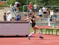 Ob es unserer 3. Starterin Helena Bartke (W 14) auch gelingen würde, eine Medaille zu erringen? Wie weit würde der 500g schwere Speer fliegen? Nach einem guten Auftakt knackte sie im 2. Versuch bereits ihre alte Bestleistung, steigerte sich im 3. Durchgang nochmals auf sehr gute 38,69m und siegte damit unangefochten.