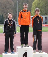 Doch das sollte den Bautzenern heute noch lange nicht reichen – alle waren motiviert, als es auf die 3×800 m ging, und keiner wollte leer ausgehen. Gleich zu Beginn legten sich die Jungen der U10 mächtig ins Zeug. Elias Kummer, Elias Grahle und Marvin Jähne zeigten sehr ausgeglichene Leistungen und liefen mit großem Vorsprung zum Sieg. Danach waren die Jungen der U12 an der Reihe, die aus Verletzungsgründen nicht in Bestbesetzung antreten konnten. So war es etwas überraschend, aber umso erfreulicher, dass Florian Ullrich, Janoš Nuck und Luis Lange ähnlich souverän das zweite Staffelgold des Tages nach Bautzen holten. Für die Mädchen der U10 ging es teilweise noch darum, Erfahrung zu sammeln, doch auch Johanna Bruck, Nathalie König und Selma Stehr kämpften bis zum Schluss und belohnten sich mit dem bronzenen Rang. Die Mädchen der U12 lieferten sich anschließend lange einen packenden Zweikampf mit dem DSC um den Sieg, in dem sie zwar unterlagen, jedoch dürfen Gloria Pietsch, Annabell Engst und Luisa Pietsch aufgrund der starken Endzeit auf ihre Silbermedaille besonders stolz sein. Schließlich war die Jugend der U14 an der Reihe. Auch hier versilberten sich Julian Gehrmann, Lennard Muschinski und Karim Hamdi ihren Staffellauf und konnten danach mitjubeln, wie Larissa Mirtschink, Alicia Rode und Elena Grahle zum Abschluss ein Lauffeuerwerk auf dem rot-gelben Radebeuler Tartan abbrannten und dem OSLV das dritte Gold bescherten.
